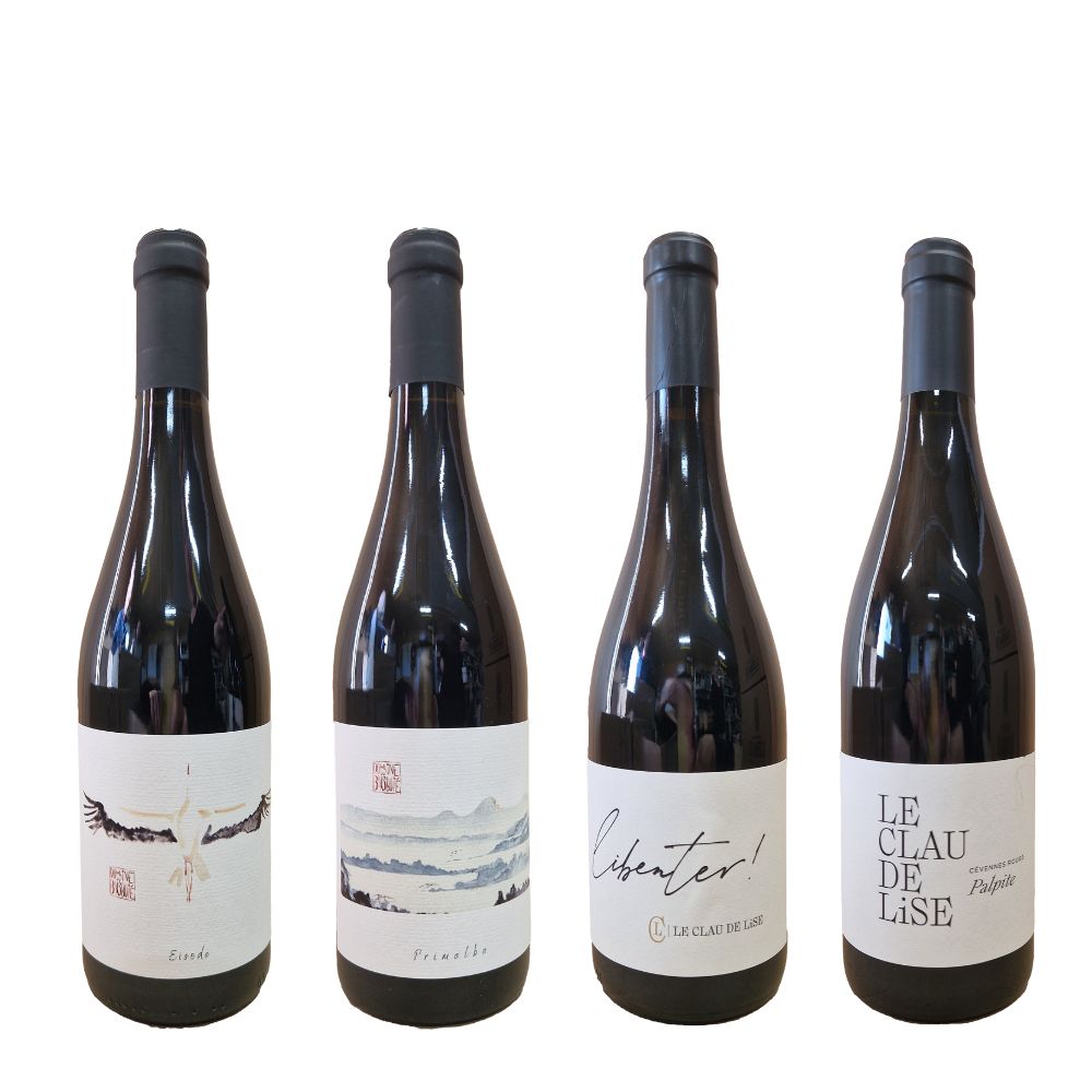 Denne smagekasse rummer 4 karakterfulde rødvine fra vores to dedikerede vinhuse i Cévennes: Domaine Du Brusquié og Le Clau de Lise.